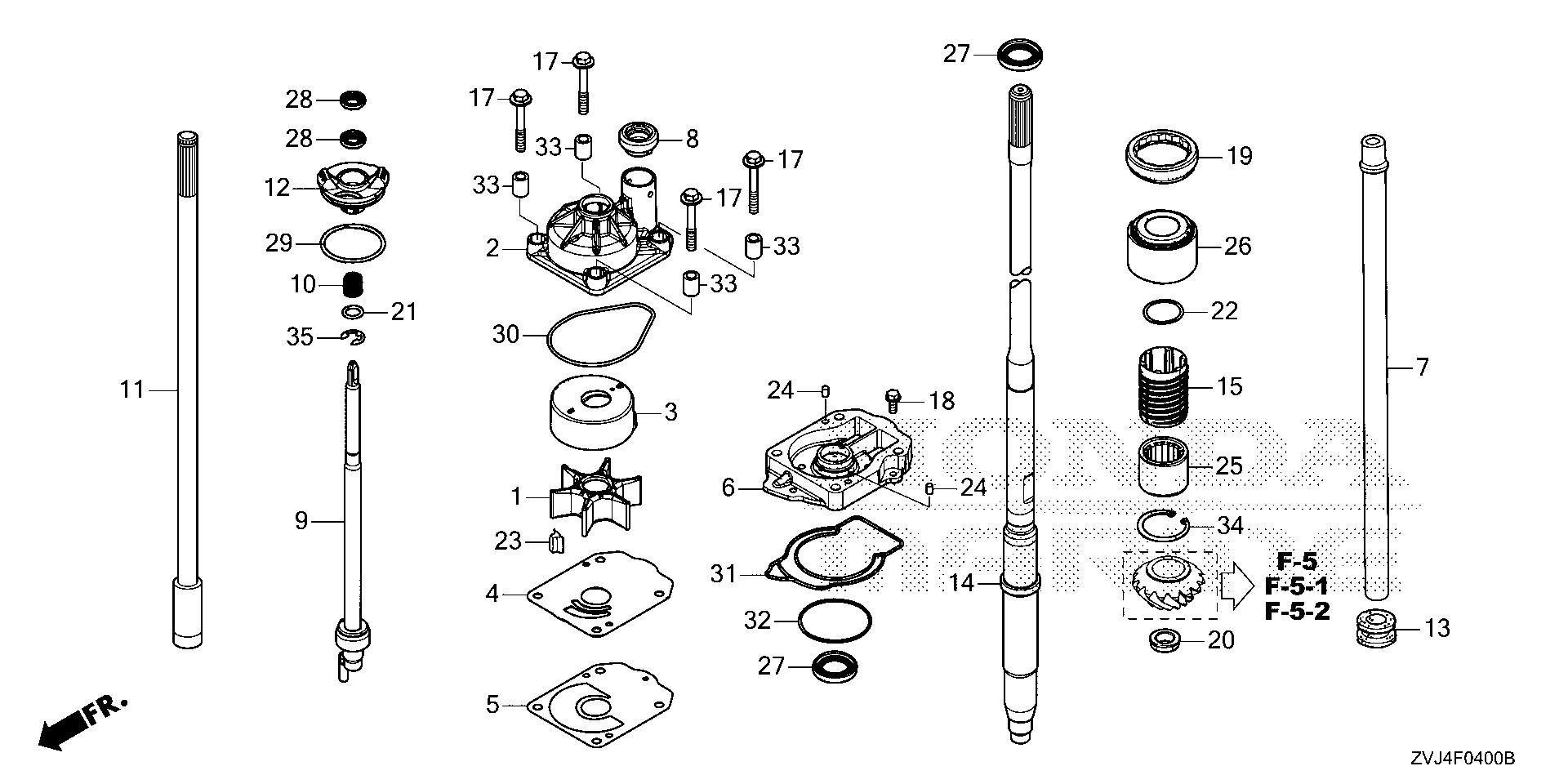 Mid - Large Outboard Engines (25 - 250hp) BF BF250 BF250D URA BBNJ-1000001-9999999 WATER PUMP@VERTICAL SHAFT - Philadelphia Boat Supply